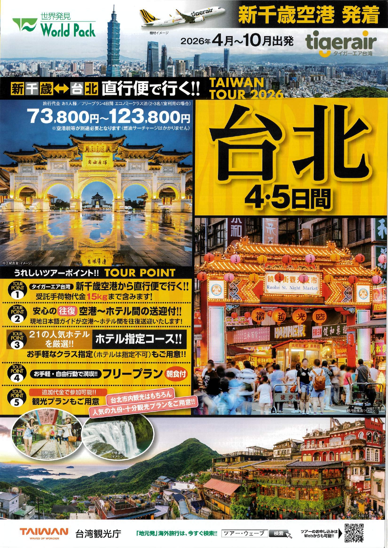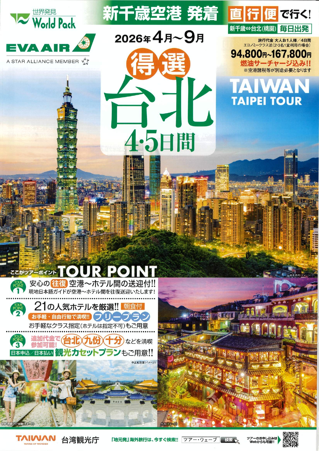 新千歳空港発着 新千歳↔台北 直行便で行く!!台北4・5日間